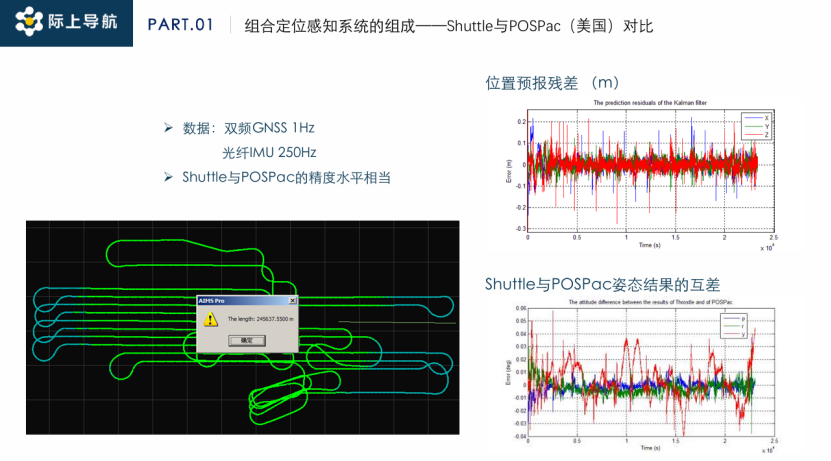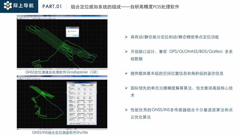 软件平台Shuttle实现双频GNSS(兼容GPS/GLONASS/BDS/Galileo多系统)与光纤IMU 250Hz数据深度融合,通过国际领先的单历元模糊度解算算法和性能优秀的GNSS/INS多传感器组合卡尔曼滤波算法,提供载体厘米级的空间位置信息和角秒级的姿态信息。