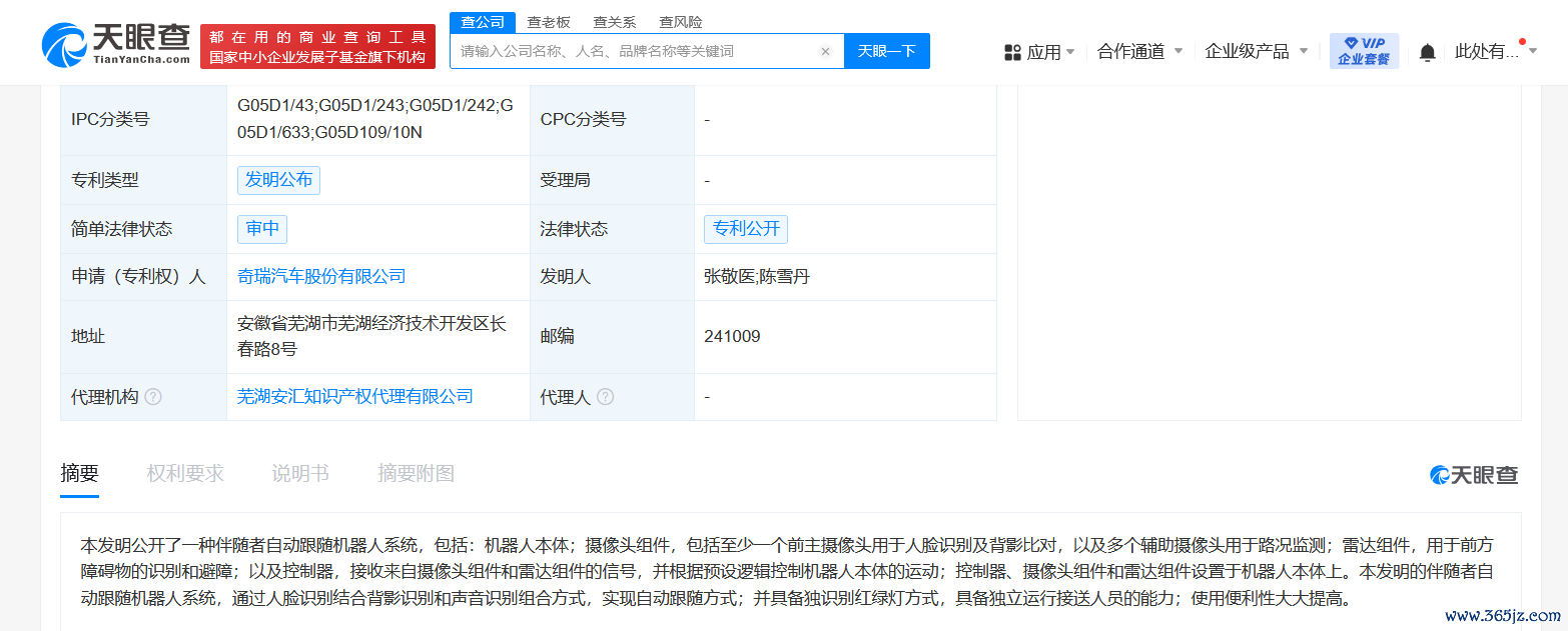 配资平台软件 奇瑞汽车公布自动跟随机器人专利