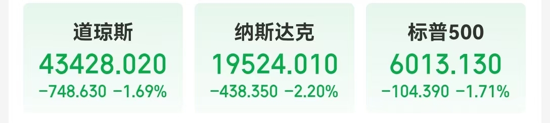 大型科技股普跌,特斯拉、英伟达跌超4%。英伟达市值一夜蒸发1391亿美元(约合人民币10087亿元)。