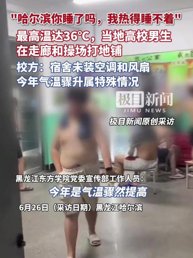 据潮新闻 6 月 27 日报道,哈尔滨一高校工作人员表示,今年是近年来最热的一年,建议同学们换夏凉被、使用电池型电风扇。至于是否会安装空调,该工作人员表示,"要看学校的计划和安排"。